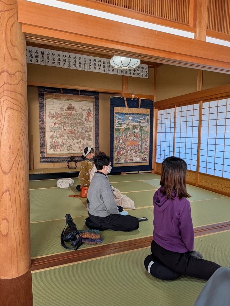 涅槃図のもとで、 暖かな日差しに包まれながら音のない静かな時間を過ごしました。