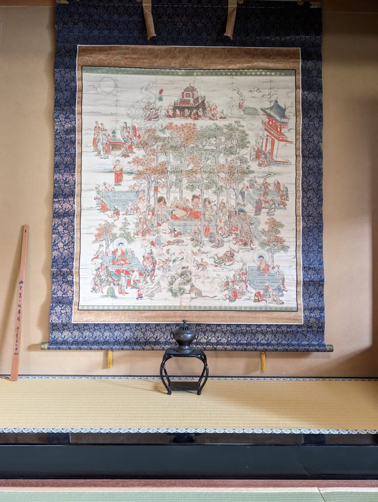 【大涅槃図展示のお知らせ】 2026.02.08 イベント 2月15日は、お釈迦様が最後の日を迎えられたご命日です。当山では、お釈迦様のご遺徳を偲ぶ「涅槃会(ねはんえ)」に合わせ、二幅の涅槃図を特別に展示しております。 当山に伝わる二つの涅槃図は、それぞれに違った趣があり、見比べることでより深く当時の情景を感じていただけます。 坐禅会の期間までお掛けしておりますので、ご参拝の折にぜひ足を止めてご覧ください。皆さまのご来山を心よりお待ちしております。